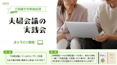 ※『夫婦会議®︎』はLogista株式会社の登録商標であり、日本で初めて夫婦の“対話”に着目して開発したメソッドです。模倣サービスにご注意ください。