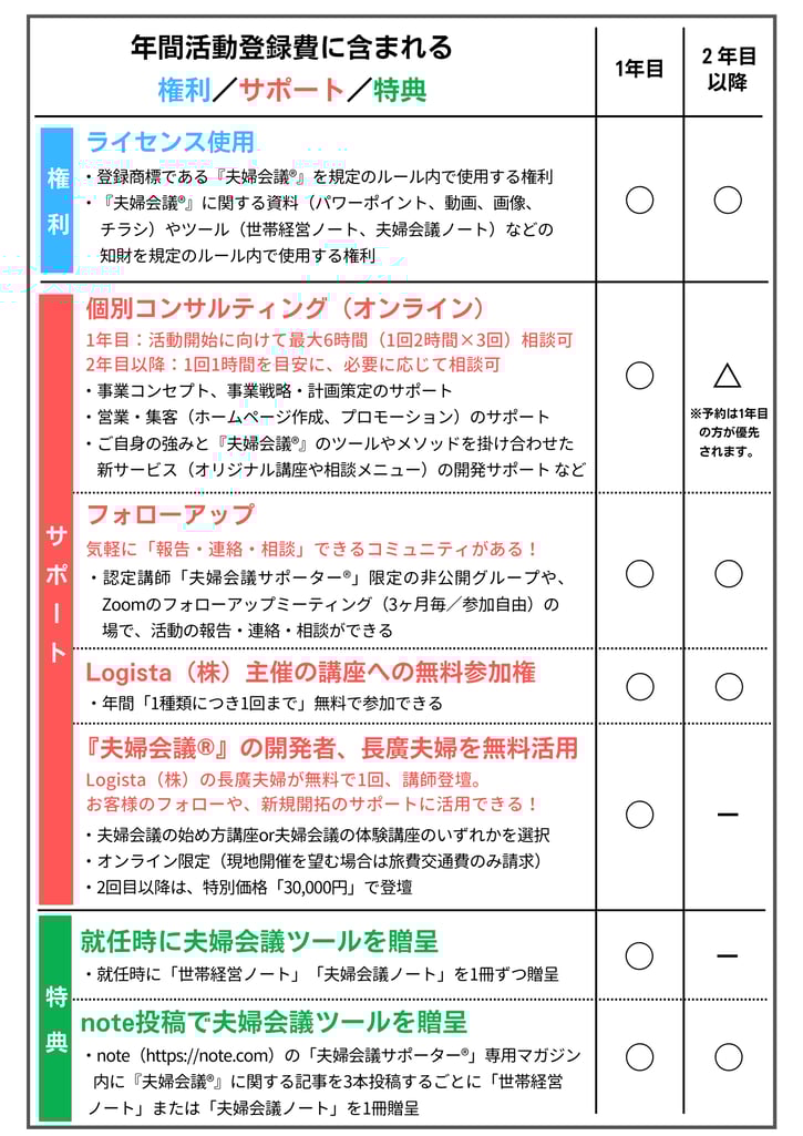 Logista株式会社では、これまで磨き上げてきた夫婦の対話メソッド『夫婦会議®』や、「世帯経営ノート(キッズデザイン賞受賞)」「夫婦会議ノート」などの『夫婦会議®』専用ツールをご自身のお仕事で活かせる資格、認定講師「夫婦会議サポーター®︎」6期生の養成講座の受付を開始しました。