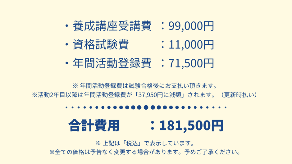 受講資格が認められた方には、認定講師「夫婦会議サポーター®︎」養成講座及び講師活動に関する規約をメールでお送りします。内容をご確認の上、期日までに養成講座受講費・資格試験費をお納めください。なお、ご入金後Logistaにメールでご連絡をお願いします。ご入金を確認出来次第「夫婦会議サポーター養成講座」に関する情報をメールでご連絡の上、各種『夫婦会議®︎』ツール・課題図書などの資料を送付します。