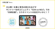 「仕事だけでなく家庭でも“対話”を大切にできるサントリアンを育みたい」との思いから、仕事と育児の両立を目指すサントリーグループの社内コミュニティ「SUN-co-NEsT(サンコネスト )」で、『夫婦会議®︎』を導入。